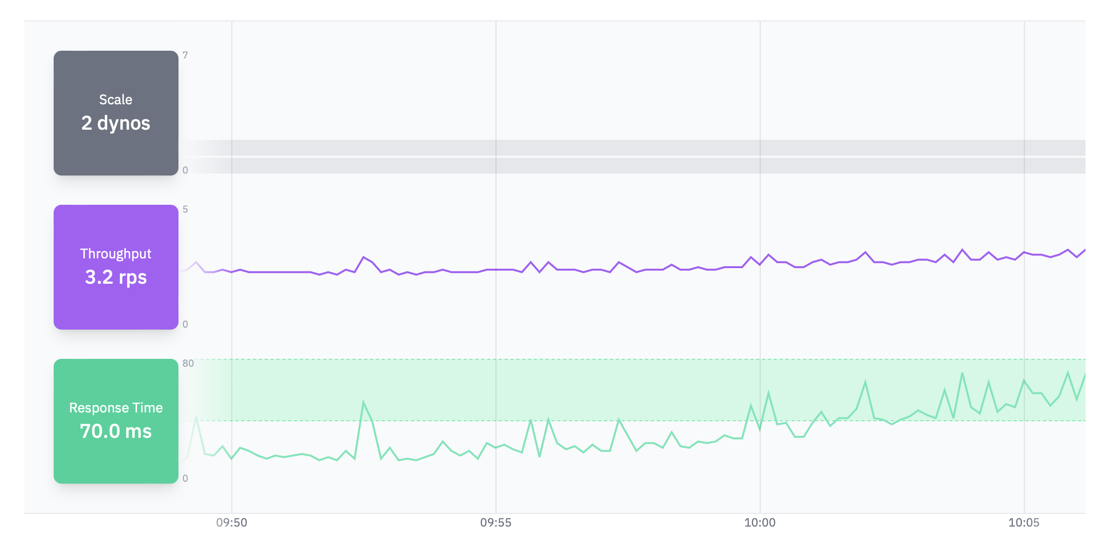 As soon as you install the add-on, Judoscale will begin monitoring your response time, throughput, and scale (how many dynos are running).